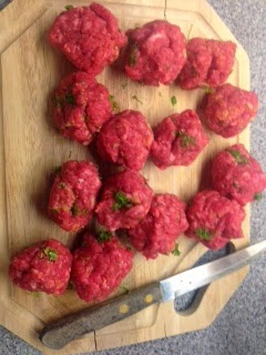 I have made spaghetti and meatballs before so wanted to do something a bit different this time. I found a recipe in Slimming World magazine for oven-baked meatballs with cheese melted over the top, which was something I hadn't tried. I adapted the recipe, leaving out the courgette and aubergine as I don't like them.