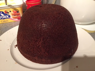 I used this recipe from Tesco to make the cake itself, though I decorated it differently. It makes a large cake, that I cooked in a 2 litre Pyrex bowl; the cooking time was pretty accurate and the cake turned out well.