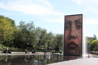 The Crown Fountain is also here - a reflecting pool between two towers that have video screens showing the faces of Chicago residents, and every so often water starts spouting out of their mouths. It's a popular meeting spot and great for kids to play in the water!