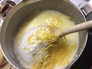 Adding the ground rice, nutmeg and lemon zest and juice to the filling mixture