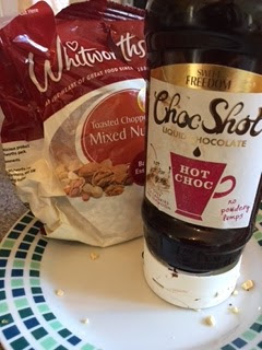 To recreate the Ferrero Rocher taste the cupcakes have a whole Ferrero Rocher baked inside! They consist of a chocolate cake, with Nutella frosting, topped with chopped nuts and drizzled with chocolate. Ros did two types of frosting on top of hers and topped them with a whole Ferrero Rocher but I didn't have enough of the chocolates to do this and decided a whole Ferrero Rocher was a big so instead I piped a swirl of buttercream, which I made from just icing sugar, butter and Nutella, sprinkled the chopped nuts over the top and then drizzled over some Choc Shot - this is a liquid chocolate that is designed to be used as a hot chocolate drink and has 85% less fat than leading brands of solid chocolate - but what I also like about it is that it's great to drizzle on cakes and desserts.