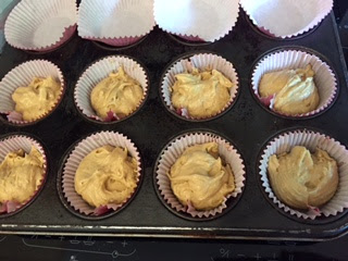 The Marks & Spencer recipe book 'Easy Cupcakes' has some really imaginative recipes - it's a very good little book that I've had for about five years but only used a handful of times. It has a recipe for tiramisu cupcakes - in true Caroline style, I didn't read the ingredients list properly and was half way through before I remembered I didn't have any masala or sweet sherry, but I did have crème de cacao and this worked perfectly. Here's what you need to do: the recipe says this makes 12 but I only got 8 (large) cupcakes out of it.